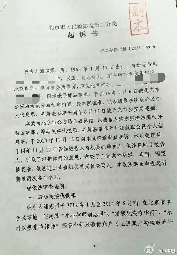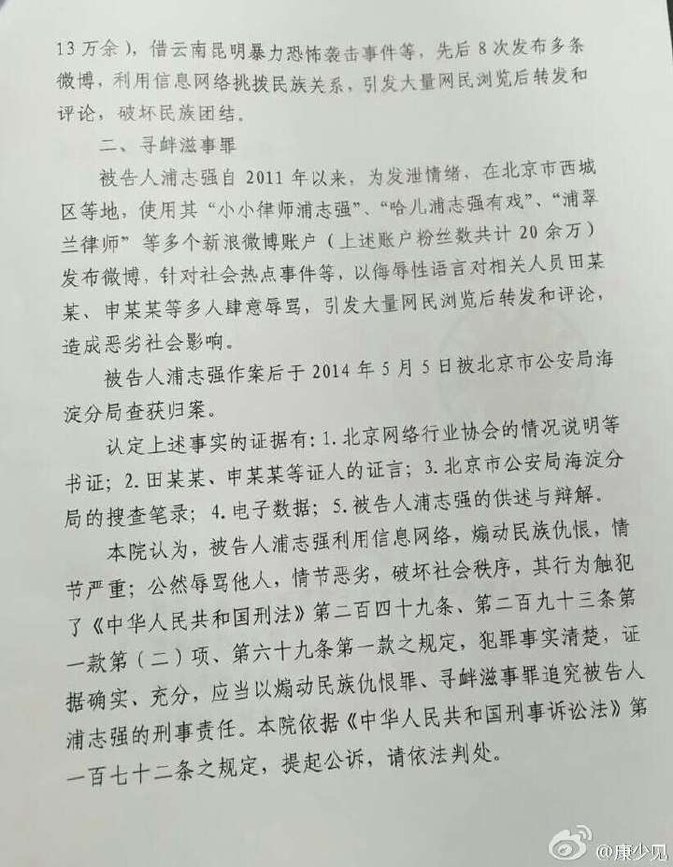 DW:浦志强案召开庭前会议 控方明列涉案微博