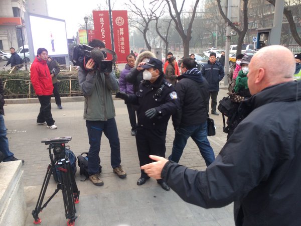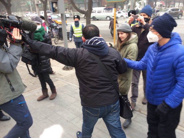 大批警察和便衣粗暴阻止 VOA叶兵北京拍摄
