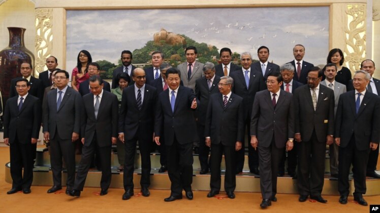 2014年10月24日中国国家主席习近平(中)在北京参加亚洲基础设施投资银行签字仪式