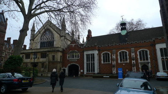 中世纪的高等教育对于师生在一起吃饭给予了特别的重视。一个人考进律师会馆,英语甚至直接说“eat his Dinners”。不只是会馆,牛津和剑桥至今也保持着这种传统。此次陈有西律师和我就承蒙剑桥的中国留学生朋友热情安排,在剑桥大学参加了这样一次正规的晚餐。出席的师生均需身穿学袍。七点整,司仪进场,全场起立,司仪敲锣,用拉丁文宣布晚宴开始。七八位学院院士从高桌(即地板高度超过其他地方的餐桌)旁边的门鱼贯而出,入席并行礼,全场落座,开始用餐。虽然餐食味道平平,不过那种仪式感给人的印象却是特别深刻。